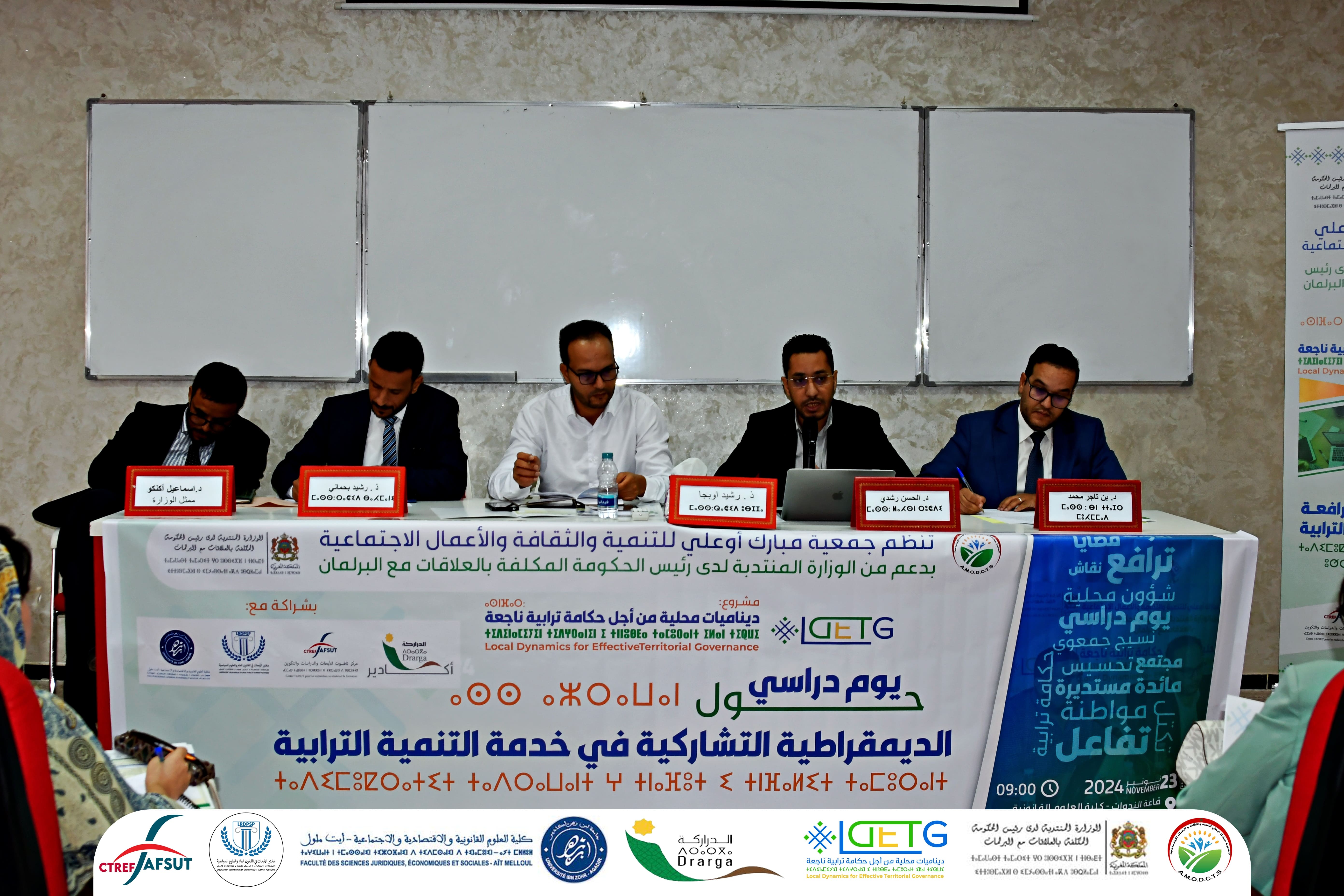 في إطار مشروع ” ديناميات محلية من أجل حكامة ترابية ناجعة ” ، نظمت جمعية مبارك أوعلي للتنمية و الثقافة و الأعمال الاجتماعية بشراكة مع الوزارة المنتدبة لدى رئيس الحكومة المكلفة بالعلاقات مع البرلمان و جمعية مركز تافسوت للأبحاث و الدراسات و التكوين و جماعة الدراركة و مختبر الأبحاث في القانون العام و العلوم السياسية التابع لجامعة إبن زهر أكادير يوما دراسيا حول ” الديمقراطية التشاركية في خدمة التنمية الترابية ” يوم 23نونبر 2024 بكلية العلوم القانونية و الاقتصادية و الاجتماعية أيت ملول .